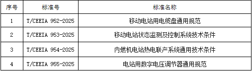2025年,移动电站专委会归口的4项团体标准顺利通过审查并正式发布,详情见下表。
